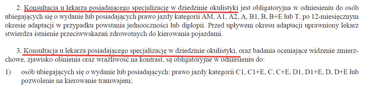 W ostatnim czasie weszła planowana jest nowelizacja rozporządzenia ministra zdrowia i jakaś zmiana zasad oceny narządu wzroku, szczególnie dla kierowców zawodowych. Normy zostały nieco złagodzone.Co z tego wyjdzie? Czas pokaże już niedługo.