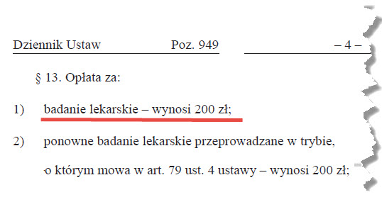 Sytuacji nie polepsza urzędowa cena za badania lekarskie 200 zł.