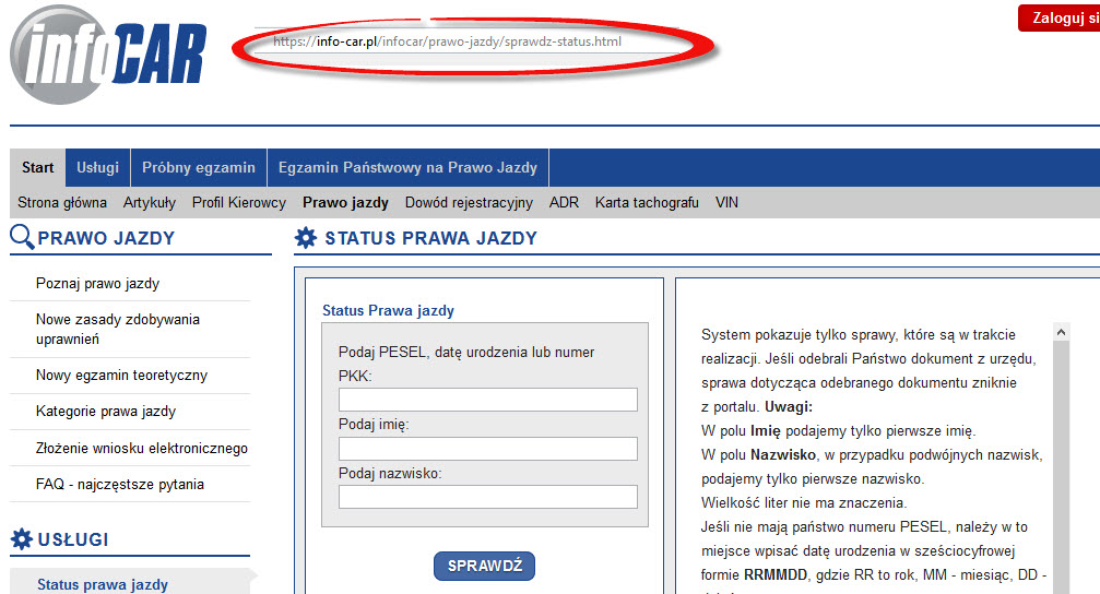 Strona na której można sprawdzić, czy jest już prawo jazdy do