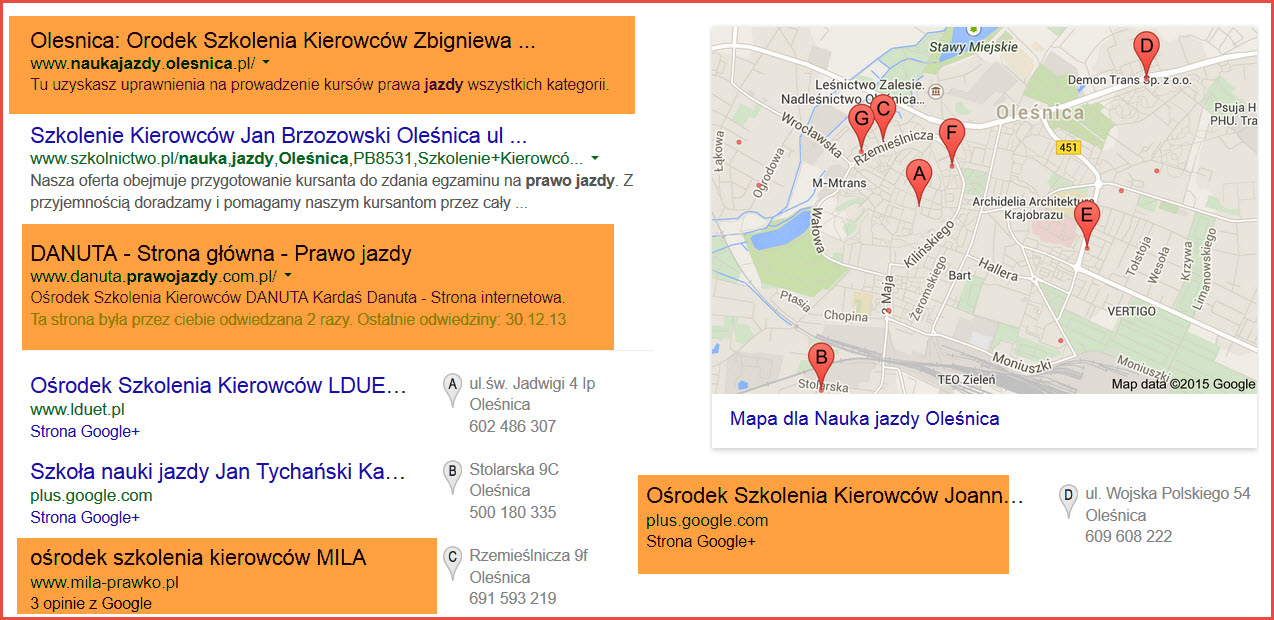 Zachęcony pozytywną opinią jednego z kierowców na temat jednej ze szkół jazdy w Oleśnicy, postanowiłem sprawdzić naocznie ich marketing internetowy poprzez hasło "Nauka jazdy Oleśnica".