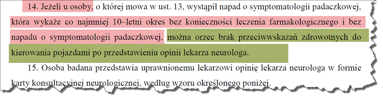 P.S. Przywrócono normę unijną i teoretycznie po 10 latach bez napadów możesz zostać kierowcą zawodowym. Zobacz na zapis w rozporządzeniu