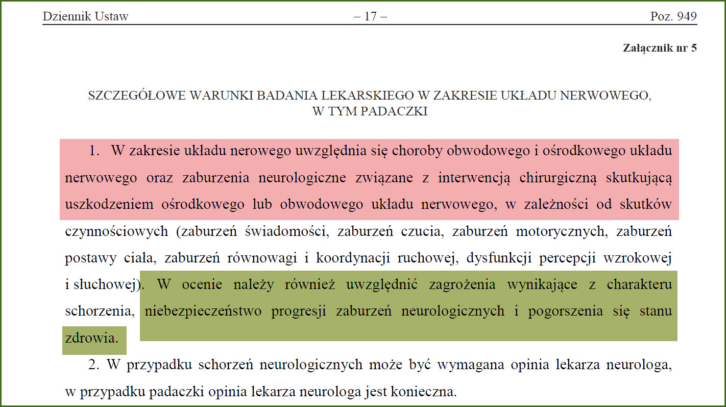 Panie doktorze, jaka jest podstawa prawna do odmowy wydania orzeczenia o braku przeciwwskazań osobom chorym na padaczkę
