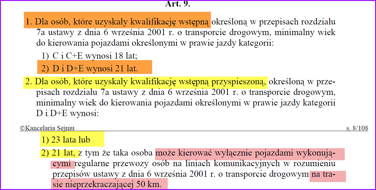 Ograniczeniem dla najmłodszych jest tutaj 280 godzin tzw kwalifikacji wstępnej, dodatkowo po kursie na autobus. Trzeba być szaleńcem aby chcieć zostać zawodowym kierowcą autobusu. |