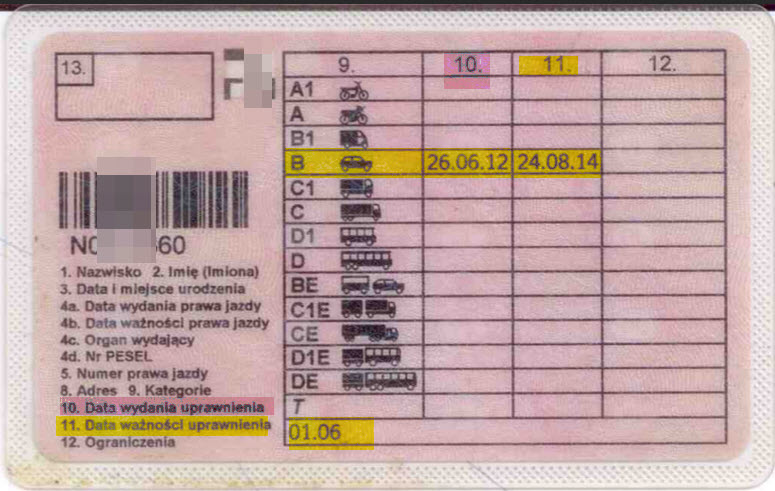 jazdy, któremu wyszła data ważności. Data ta jest do sprawdzenia na