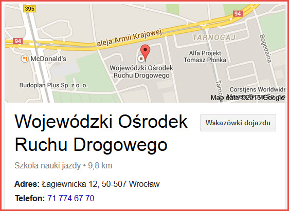 Wojewódzki Ośrodek Ruchu Drogowego Wrocław jest instytucją, do której należy się udać po zakończeniu kursu nauki jazdy.Musimy złożyć w dziale obsługi klienta, otrzymane ze szkoły jazdy,zaświadczenie o ukończeniu kursu.