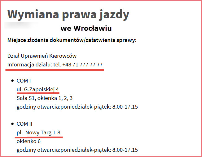 Dla osób chcących załatwić jakiekolwiek sprawy związane z byłym wydziałem komunikacji podaję dane kontaktowe : tel. (71) 777-77-37 , 777-86-65 fax (71) 777-77-86 e-mail: wso@um.wroc.pl